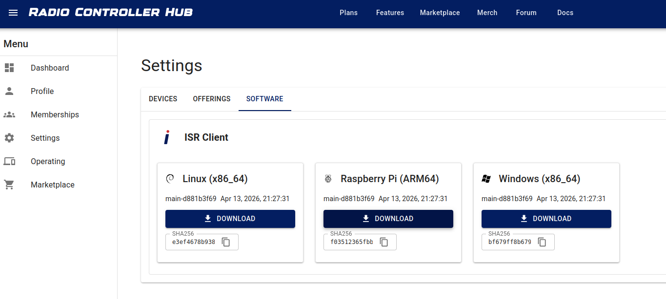 - Download the RaspberryPi debian package from the Hub Software Tab to your computer.